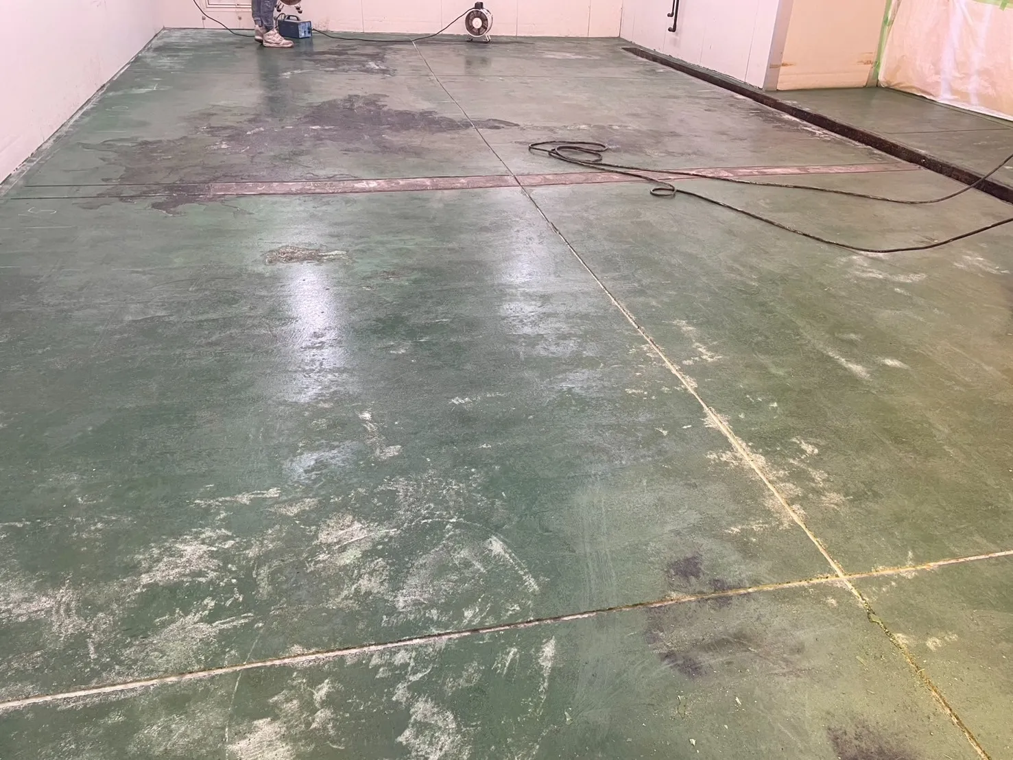 今回は、某食品工場様にて、水性硬質ウレタン塗り床材「ミルクリートMM-Z」を使用した